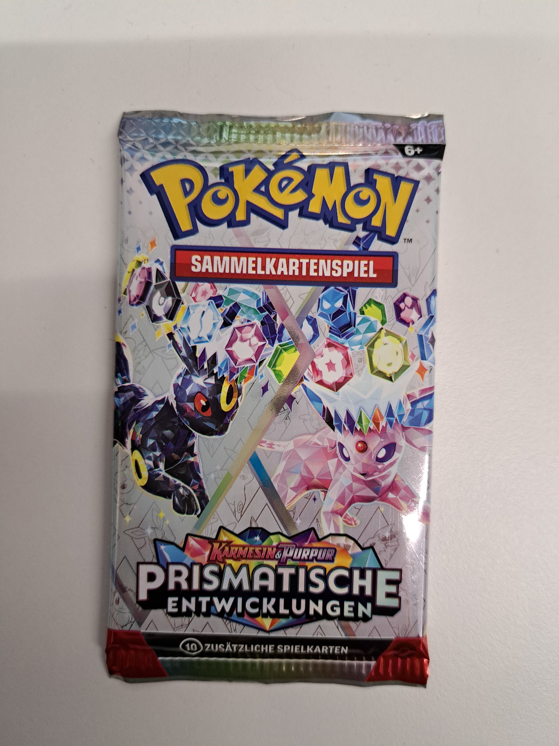 - x Boosterpacks enthalten: Freue dich auf Boosterpacks der Erweiterung Karmesin & Purpur Prismatische Entwicklungen, gefüllt mit spannenden Karten und besonderen Illustrationen.